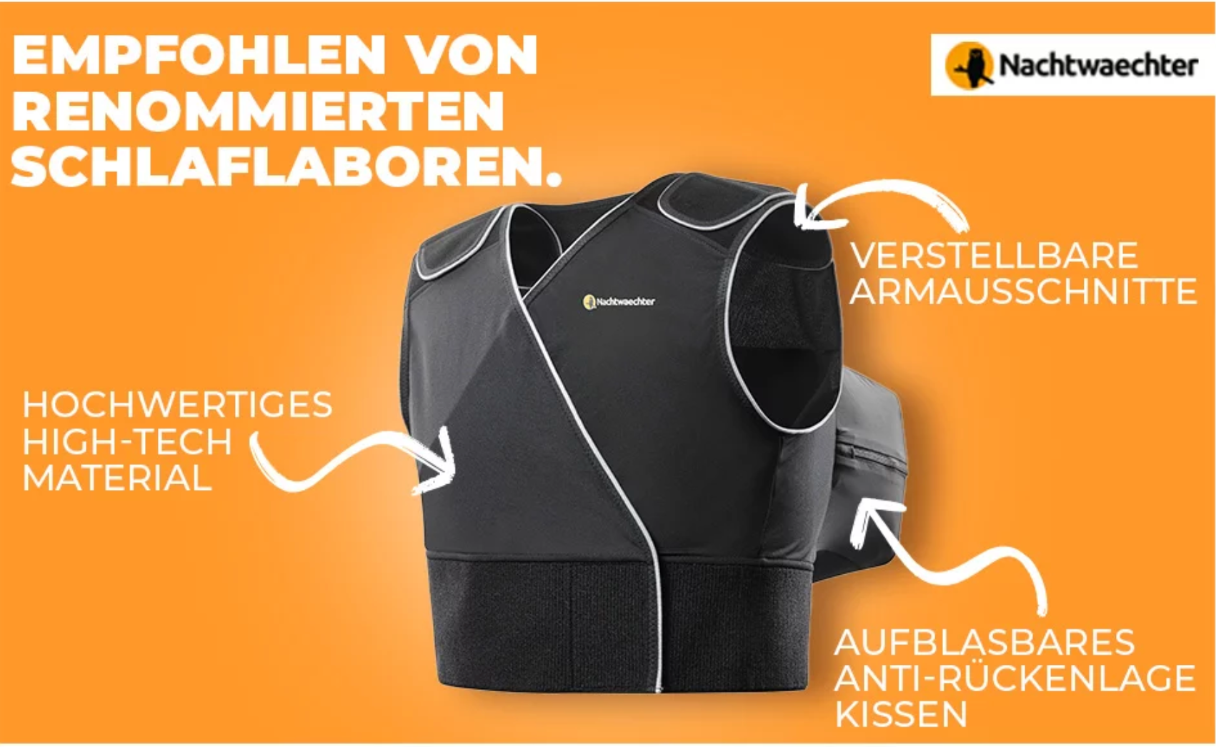Die Nachtwaechter Schlafweste ist Ihr Trainingsgerät gegen Schnarchen. Laut Ärzten kann man sich die Seitenlage beim Schlafen mit einer Rückenlageverhinderungsweste antrainieren!