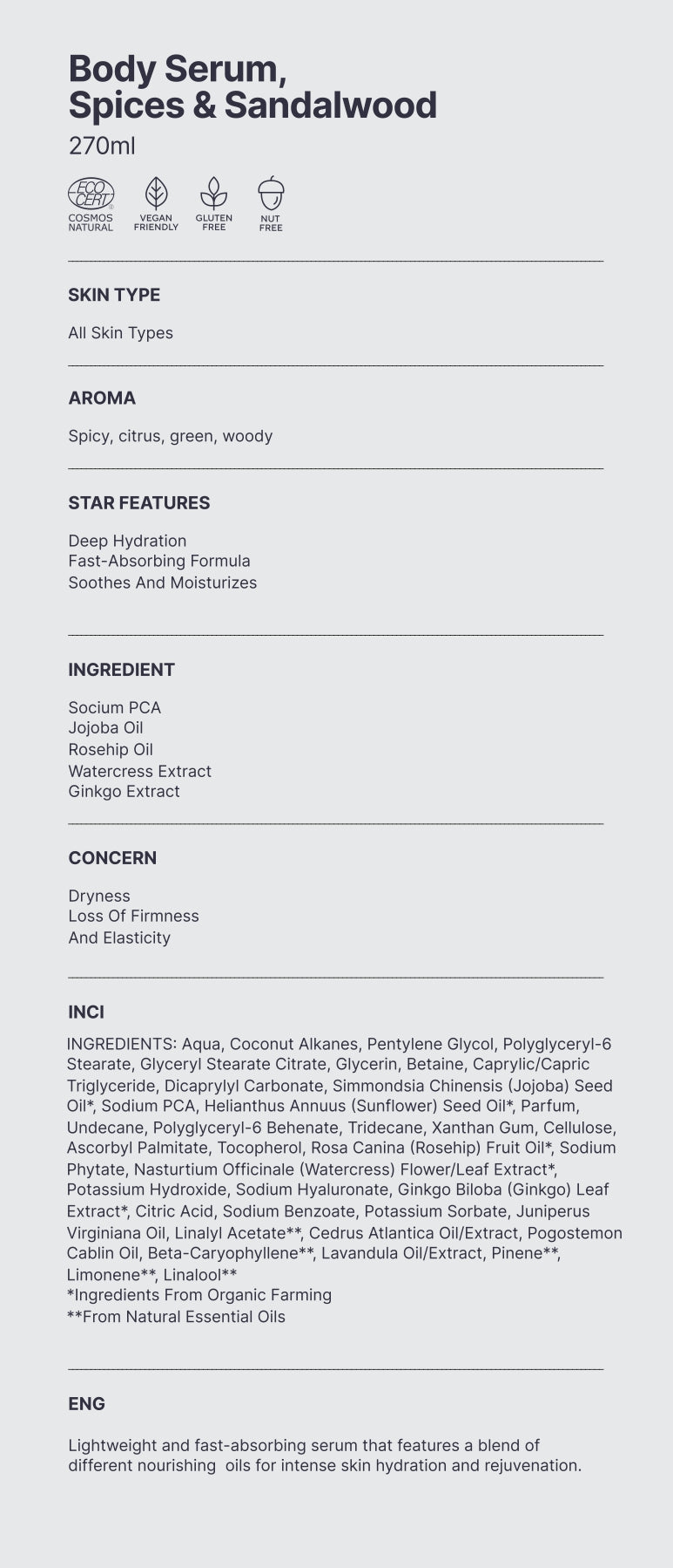Natural. Silk Skin Body Serum, Spices & Sandalwood